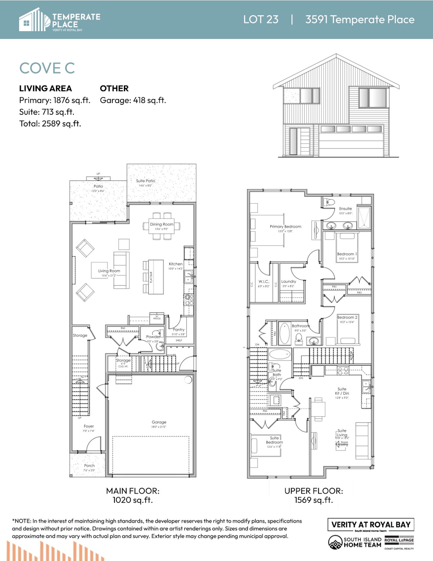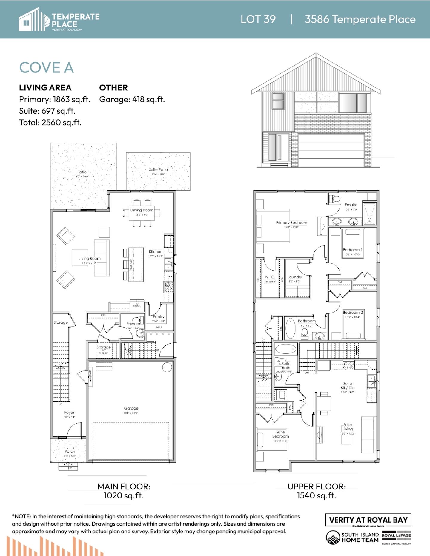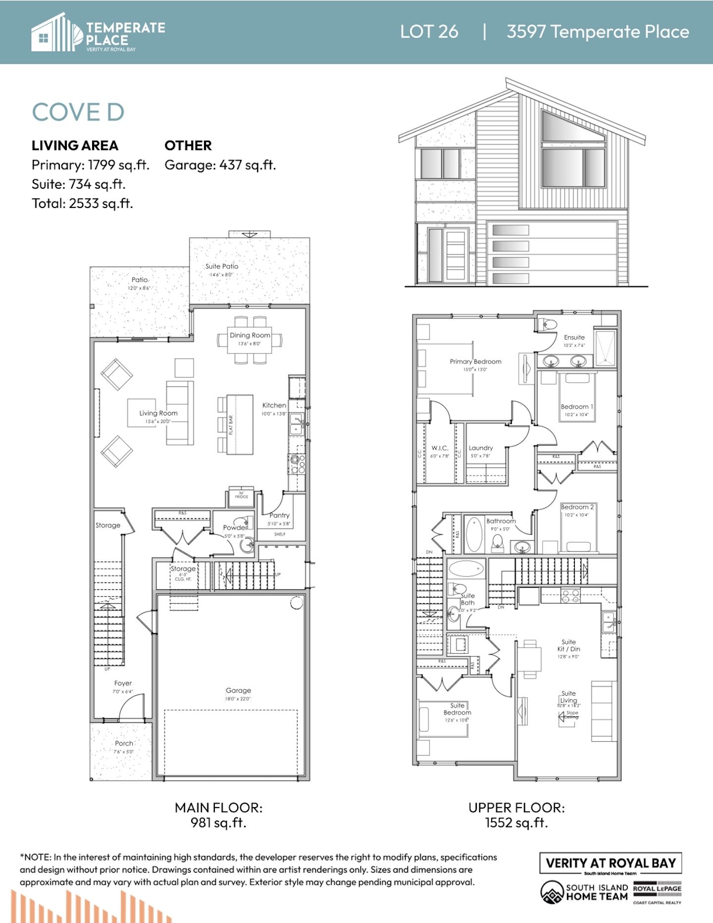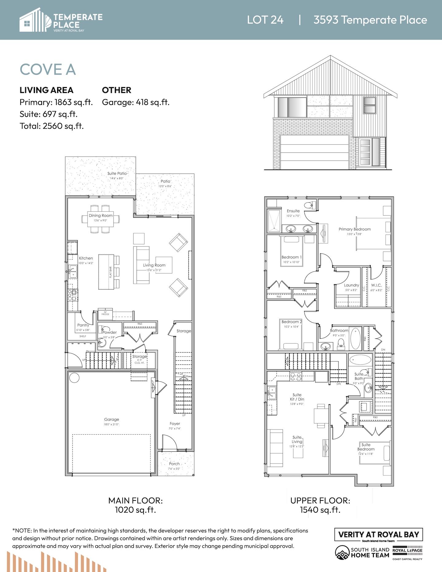 NOTE: In the interest of maintaining high standards or in the event of shipping delays or discontinued products, the developer reserves the right to modify plans, specifications, and design without prior notice. Sizes and dimensions are approximate and may vary with actual plan and survey. Exterior style may change pending governing parties approval. Retaining wall location and types may vary and are subject to municipal, engineering or developer discretion. Subject to change without notice.
