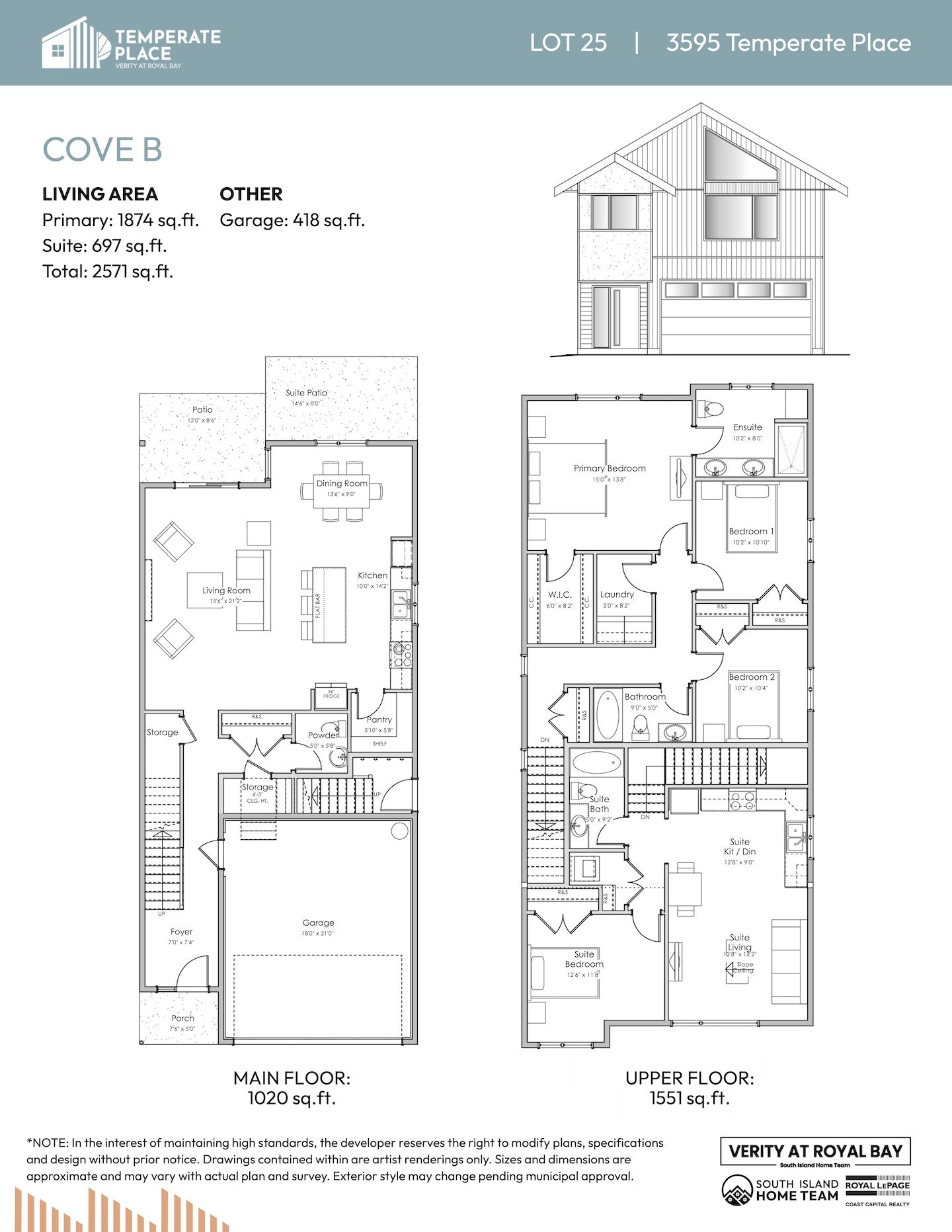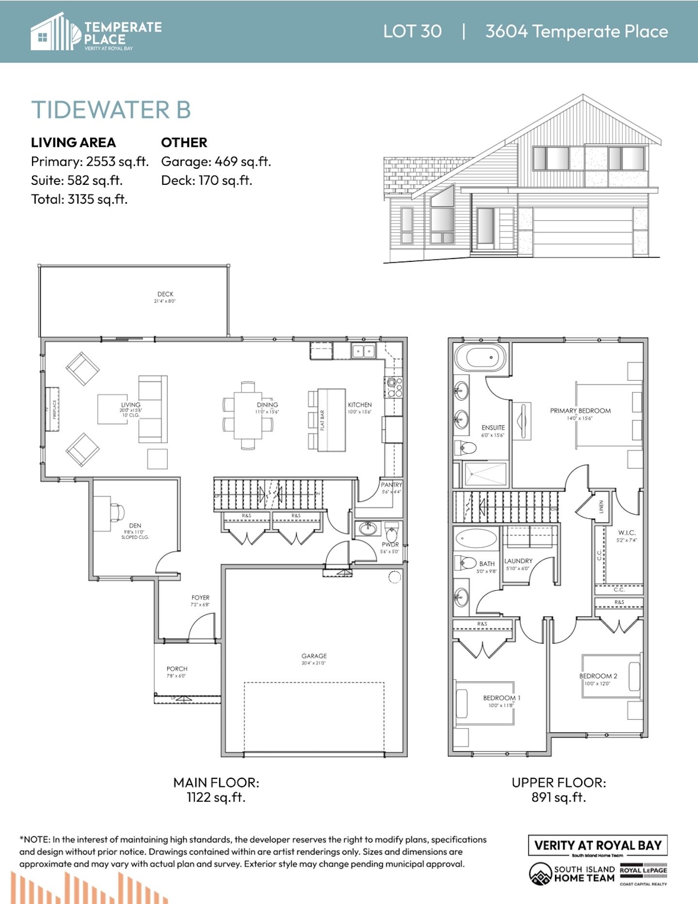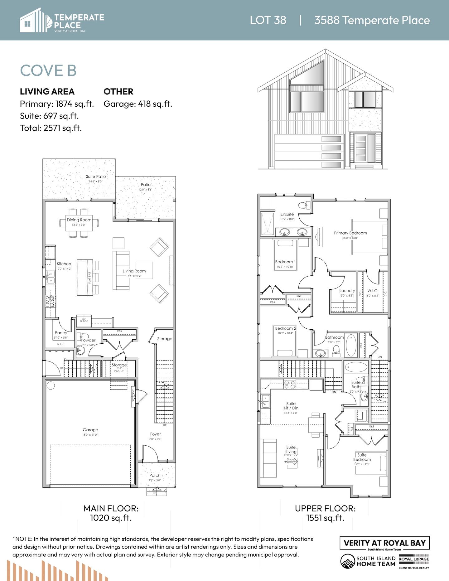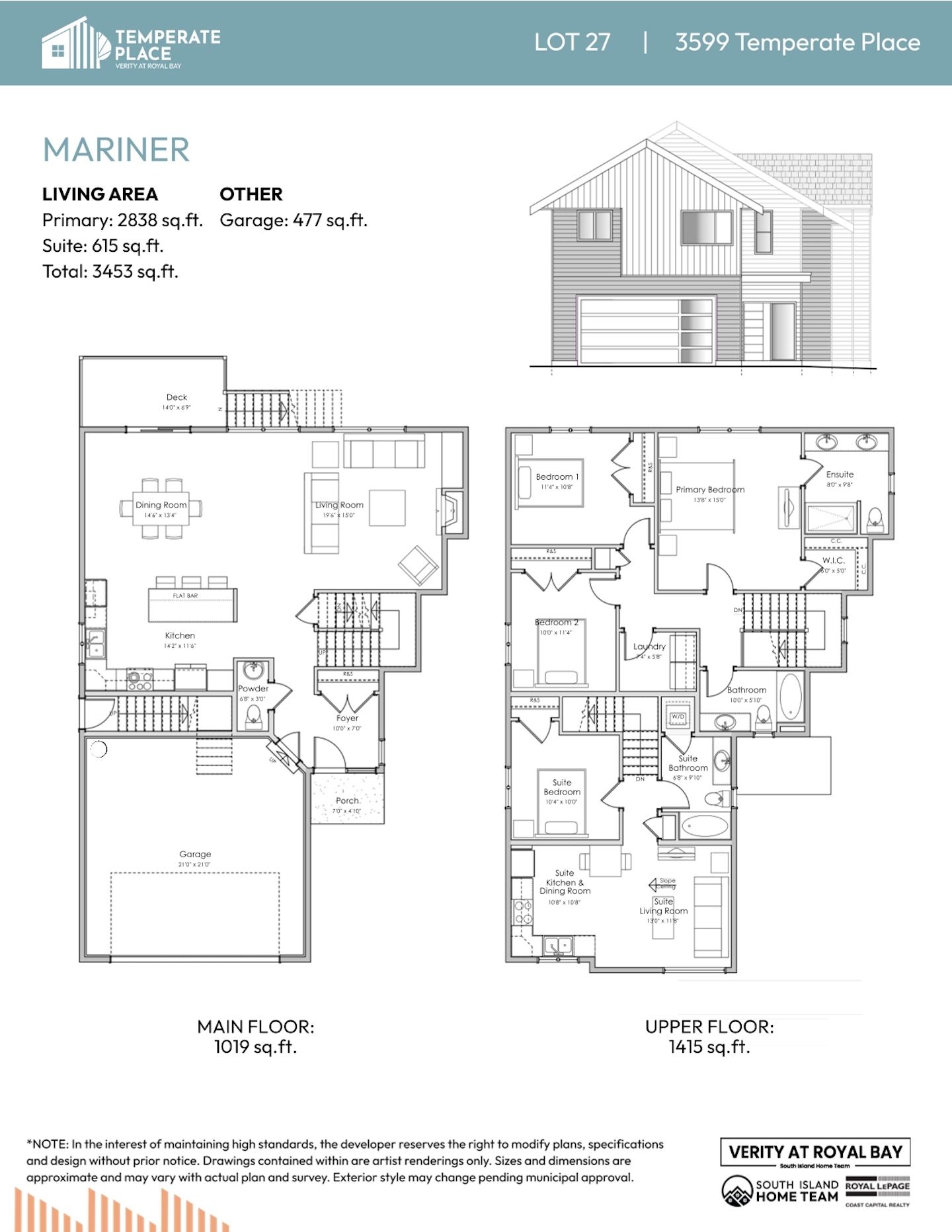 NOTE: In the interest of maintaining high standards or in the event of shipping delays or discontinued products, the developer reserves the right to modify plans, specifications, and design without prior notice. Sizes and dimensions are approximate and may vary with actual plan and survey. Exterior style may change pending governing parties approval. Retaining wall location and types may vary and are subject to municipal, engineering or developer discretion. Subject to change without notice.