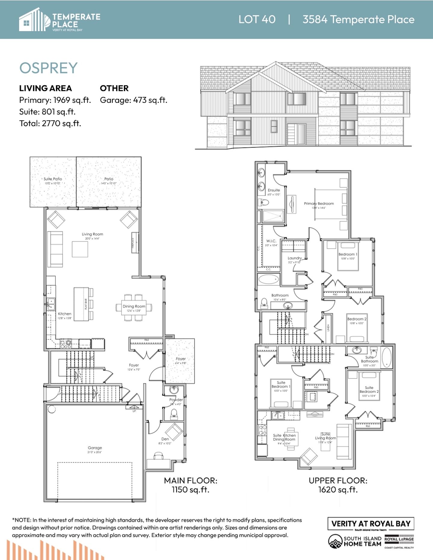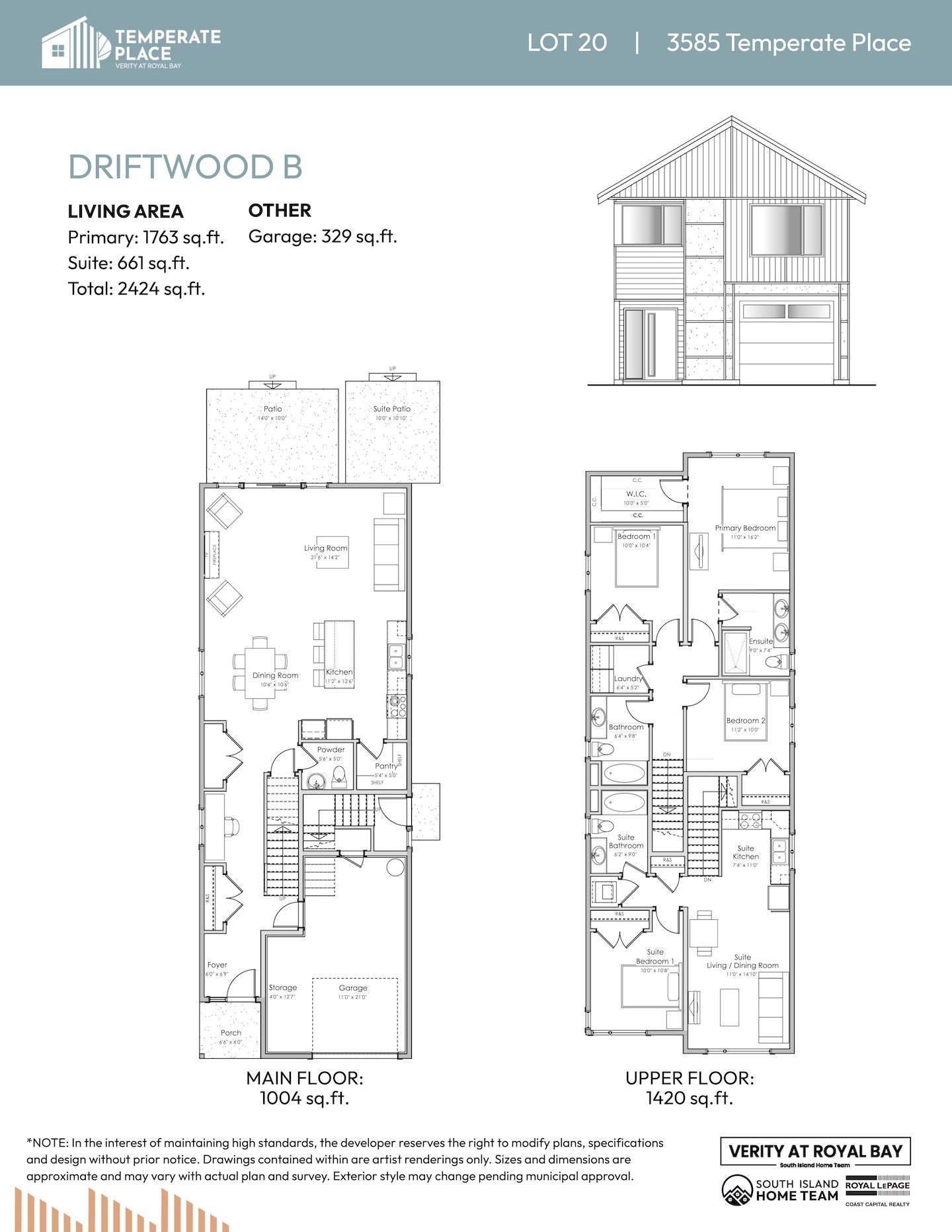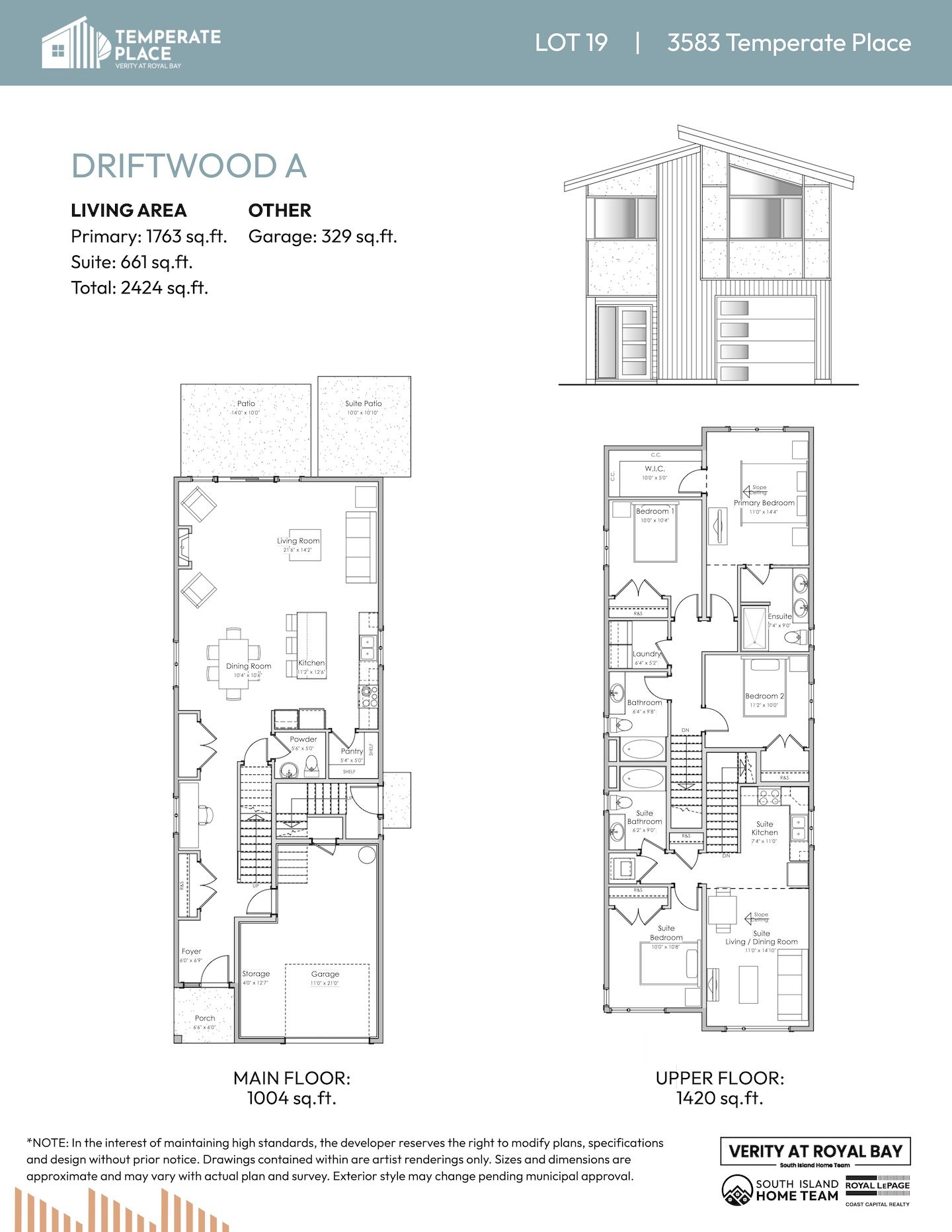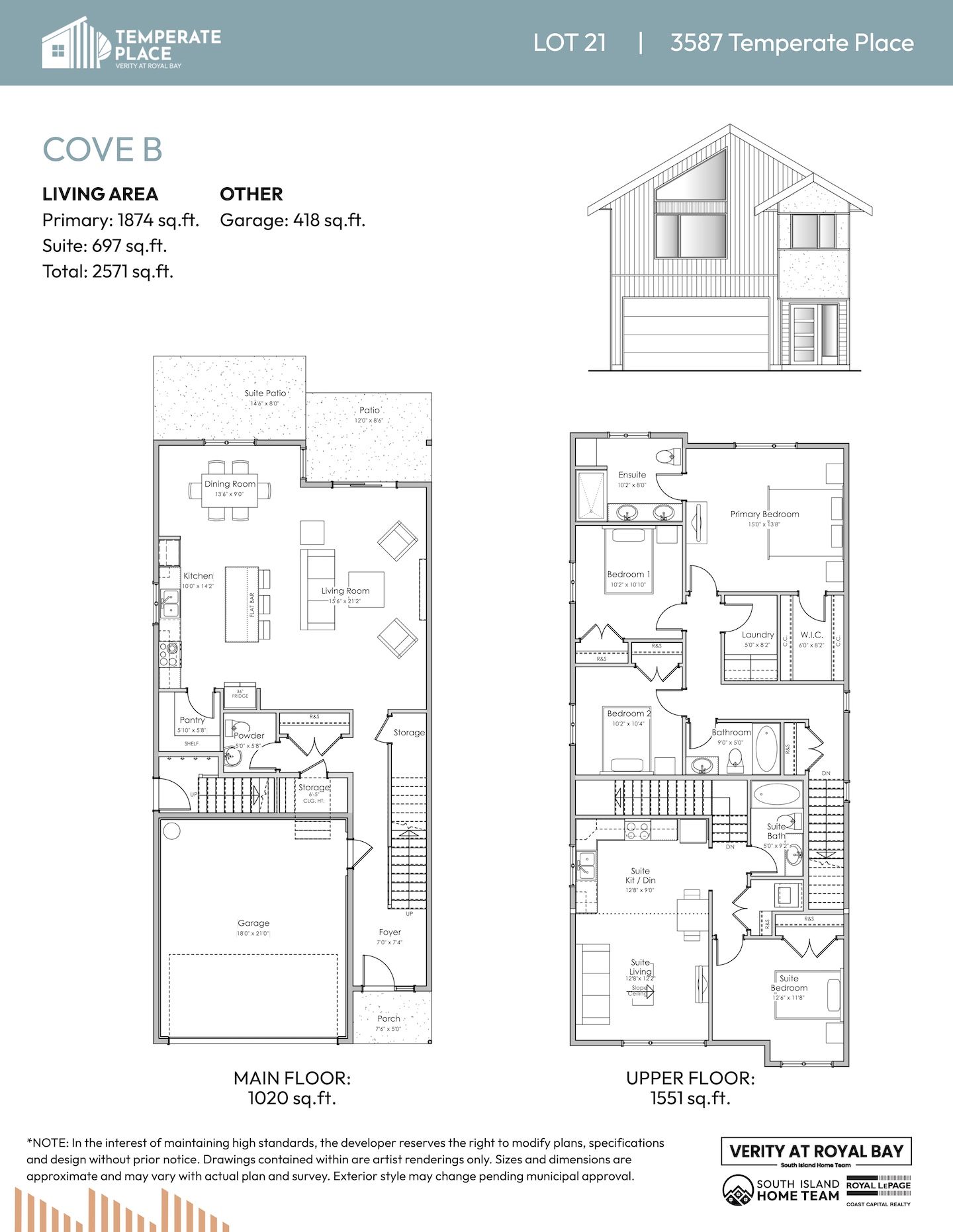 NOTE: In the interest of maintaining high standards or in the event of shipping delays or discontinued products, the developer reserves the right to modify plans, specifications, and design without prior notice. Sizes and dimensions are approximate and may vary with actual plan and survey. Exterior style may change pending governing parties approval. Retaining wall location and types may vary and are subject to municipal, engineering or developer discretion. Subject to change without notice.