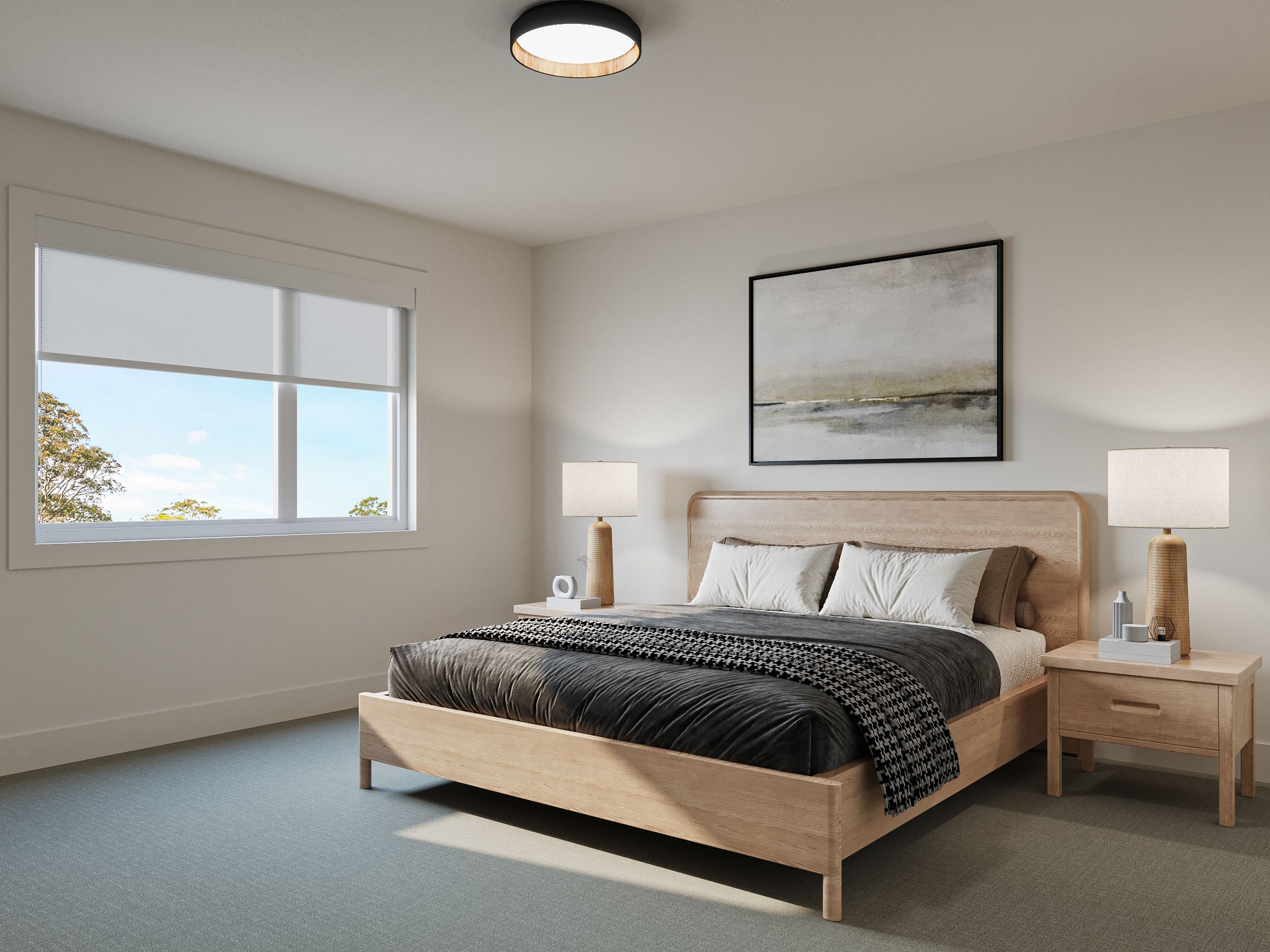 - Stylish and discrete roller shades with blackout in main house bedrooms